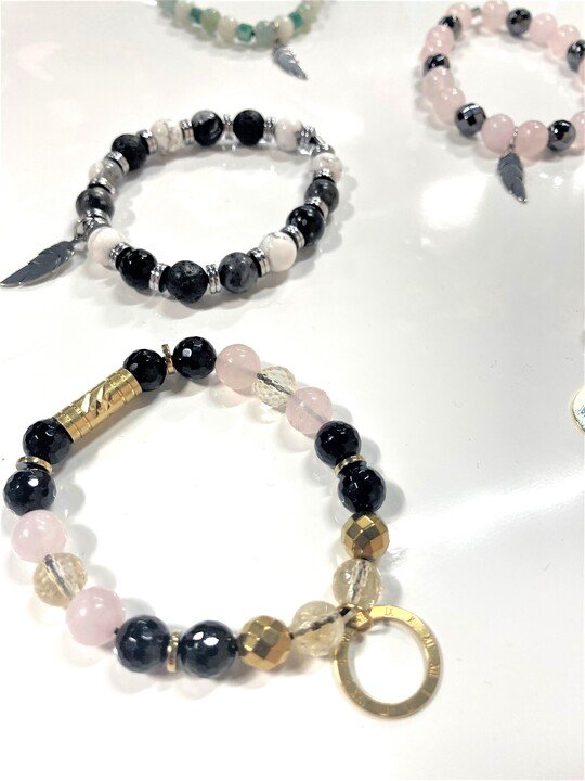 Que vous appréciez les breloques plus sobres, ou les charms fantaisies, je vous propose un large choix de perles, de pierres de gemme (quartz rose, pierre de lune, pierre du soleil, nacre, …)  et d'apprêts adaptés à toutes vos envies.