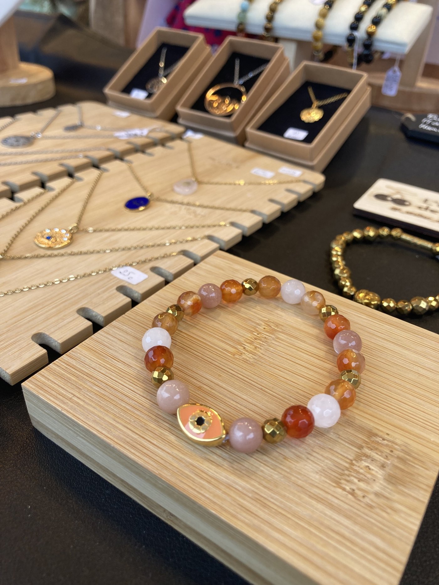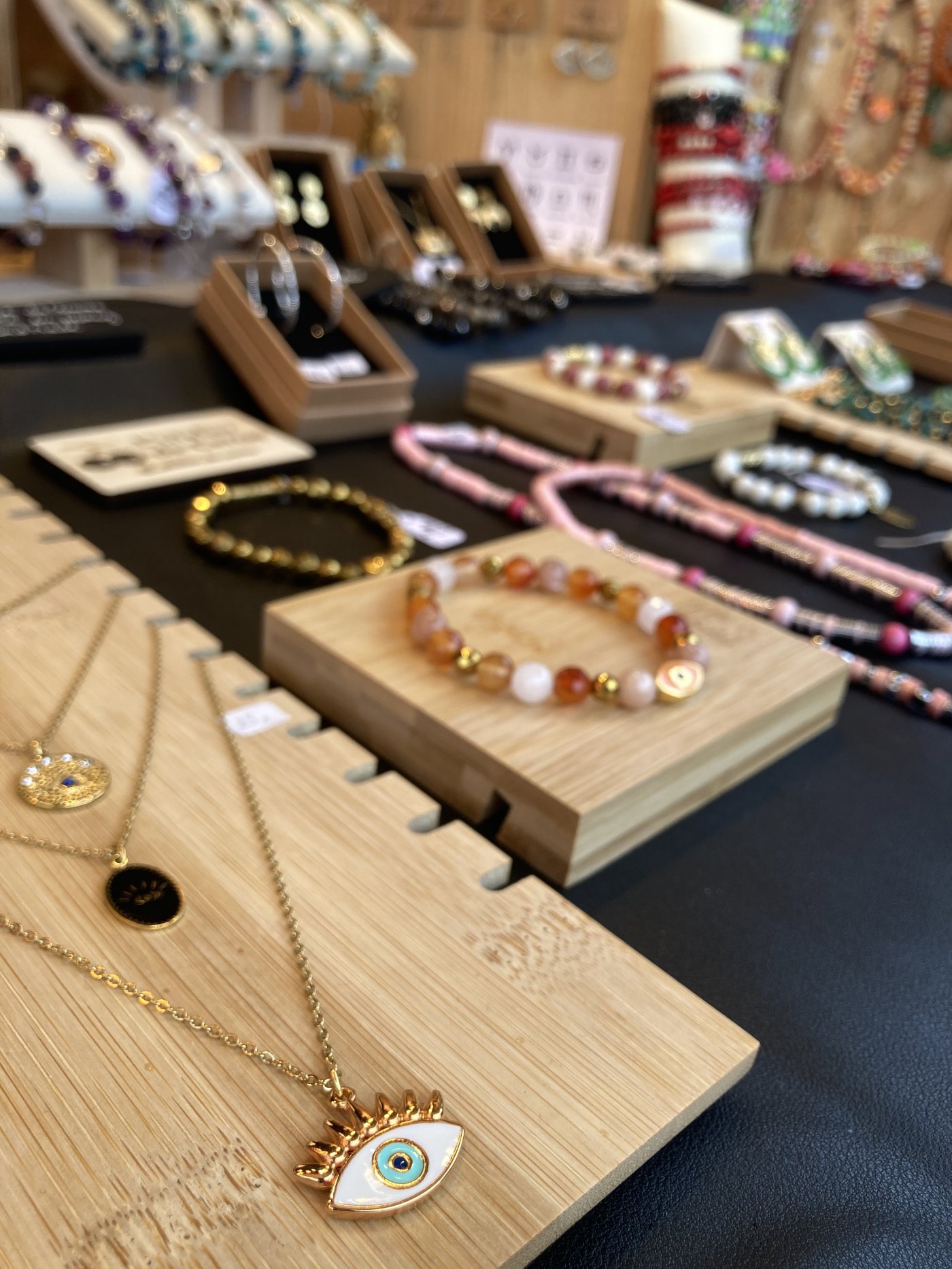 This year, in partnership with Signature Fait Main, I exhibited some of my jewelry on a stand at the Place Charles III Christmas market from November to December! You could find a wide range of stainless steel and handmade gemstones jewelries, in a light and magical atmosphere. Mulled wine, waffles, pretzels… you had the choice to enjoy while strolling through the market alleys.