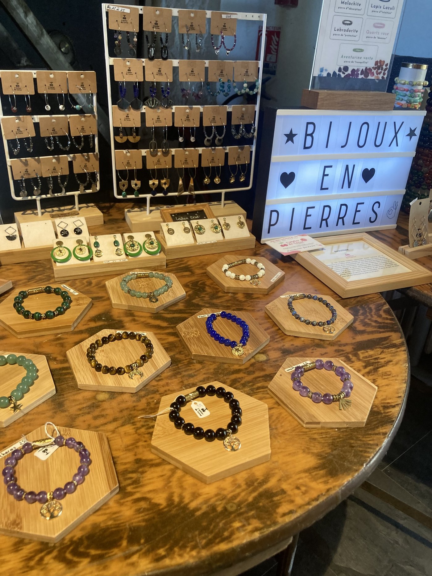 Lors de l'événement The Good Event, j'ai pu exposer une large gamme de bijoux faits main à Laxou. Tous les bijoux sont réalisés en acier inoxydable et pierres de gemme. Les clients ont pu choisir les bijoux qui leur plaisaient parmi une variété de couleurs.