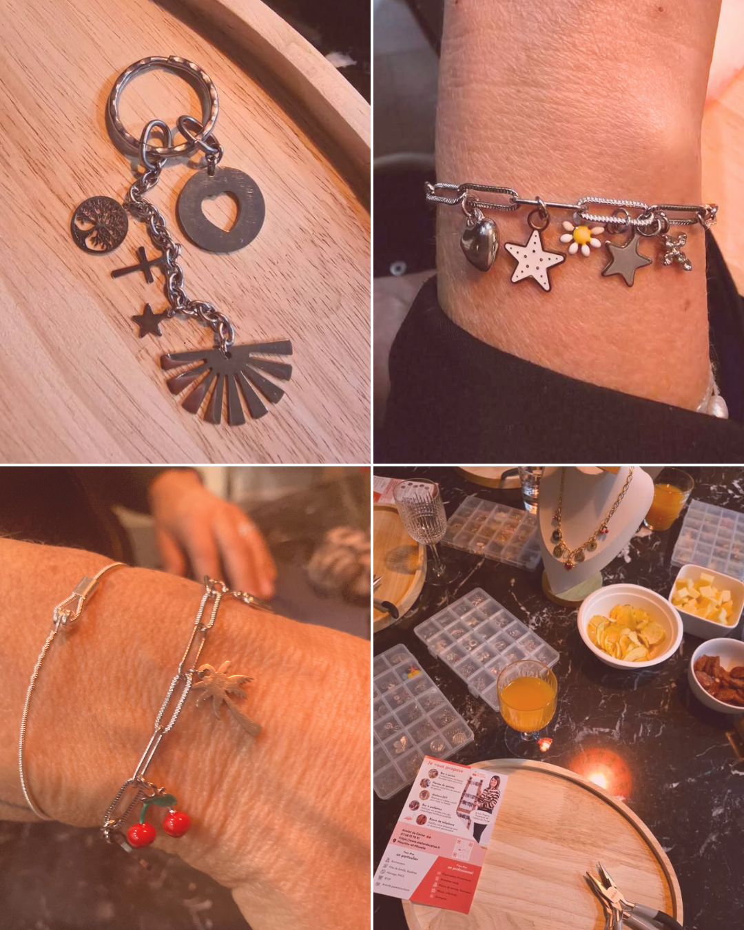 Pendant cet atelier, chacune peut laisser parler sa créativité et réaliser le bijou charms de son choix : bracelet, collier, bijou de sac, bijou de cheville… (à partir de 25€).